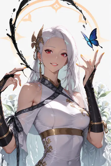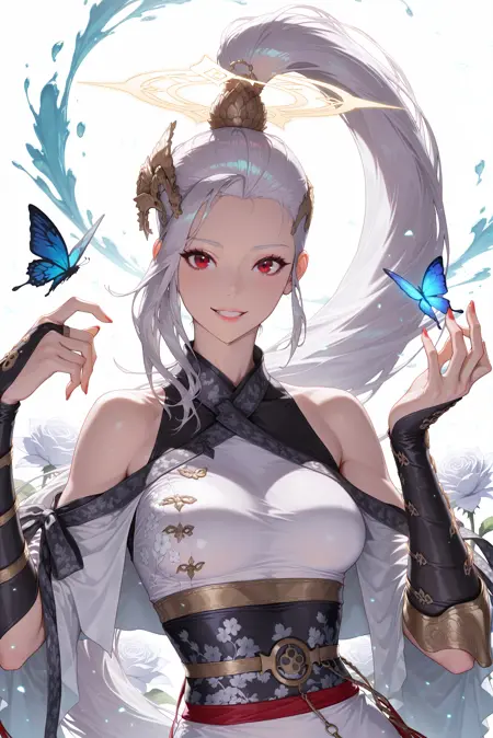 Core Trigger Words:vagabond \(dungeon and fighter\), silver hair, long hair, high ponytail, red eyes, vagabond def chinese clothes, vagabond hair ornament