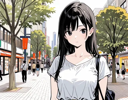 タイル舗装された遊歩道の風景を強化するLoRAです。