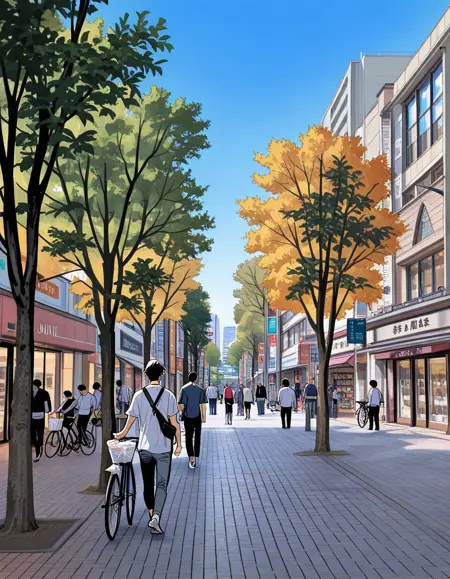 日本の中規模以上の駅前によくある、○○モールと名の付いたがアーケードではない通りの風景を想定しています。