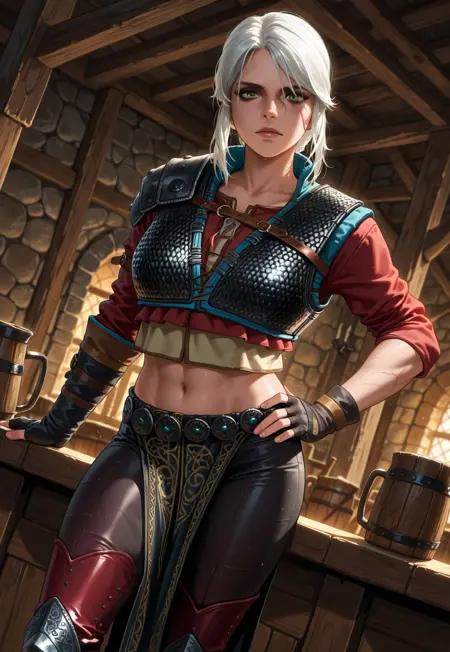 汎用トリガー語: - ciri, 白髪, 緑の目, 目の横の傷, (必要に応じてバラのタトゥー、太ももタトゥー)