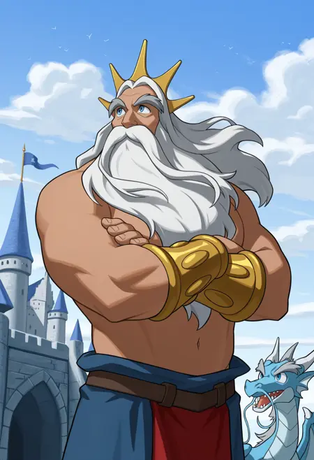 retro artstyle, 1990s \(style\)might help reproduce the classic style.In that style, his nipples are not very obvious (only areola), I'm not sure how to solve this either.