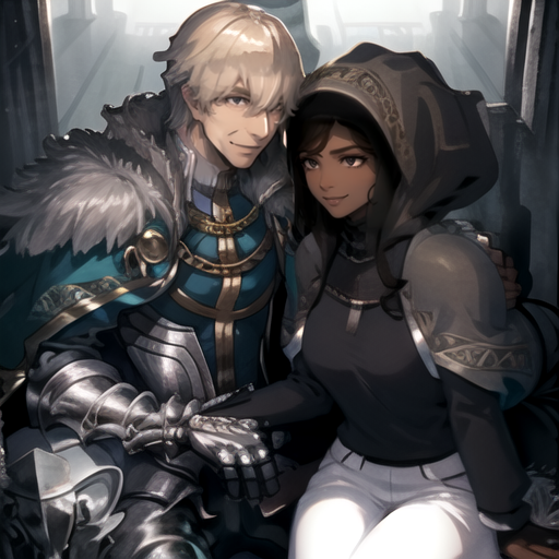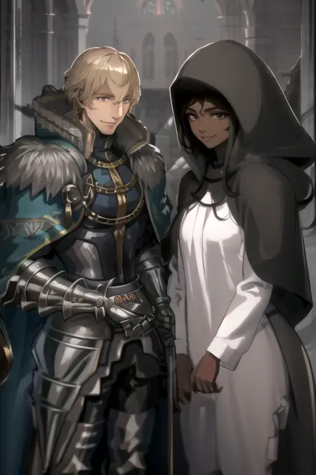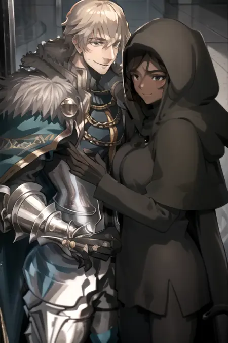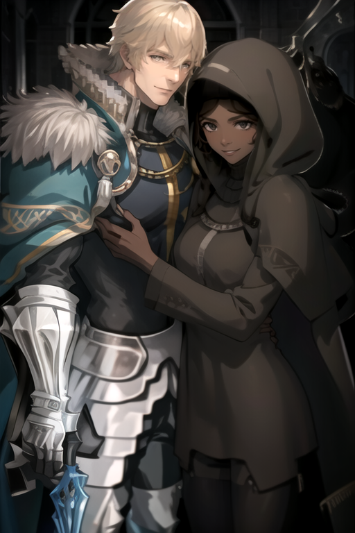 GawainSalia, a man and a dark woman, hetero, standing, smile, cowboy shot