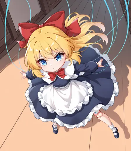 大多数动漫基础模型无需使用LoRA就能较为准确地生成大多数东方角色,但上海爱丽丝是个难点,因为任何关于她的训练数据很可能以爱丽丝为图像焦点。因此,我使用了少量我能找到的上海单独图像以及一些裁剪出来的她的画面来制作了这个模型。