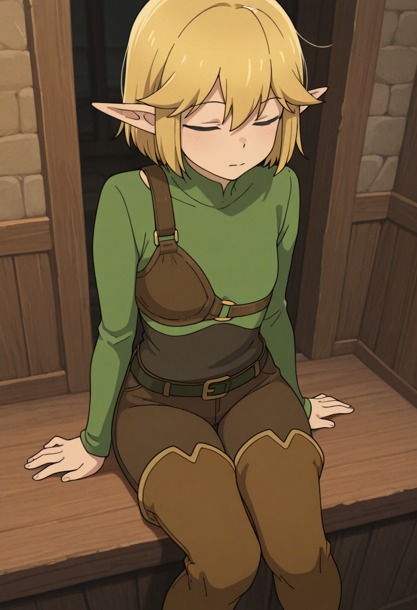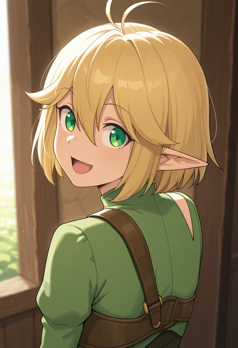 Trigger Words: fio, blonde hair, pointy ears, short hair, green eyes