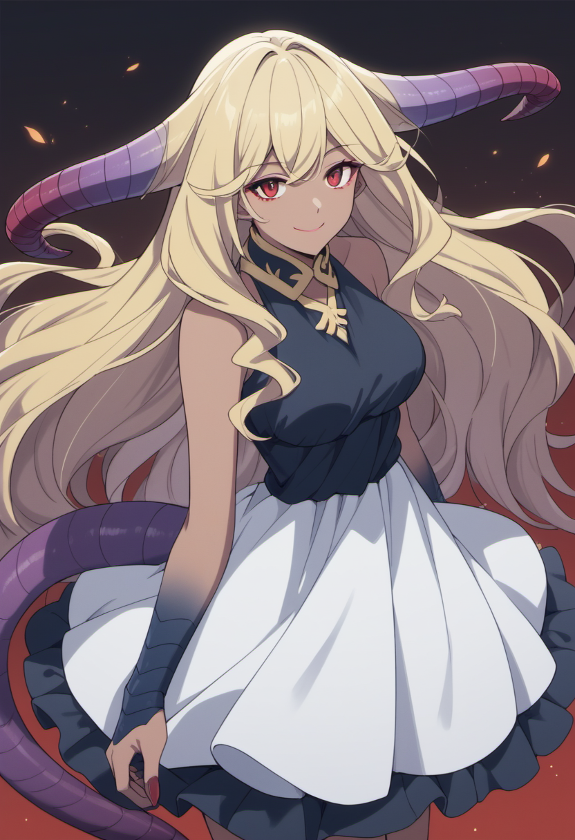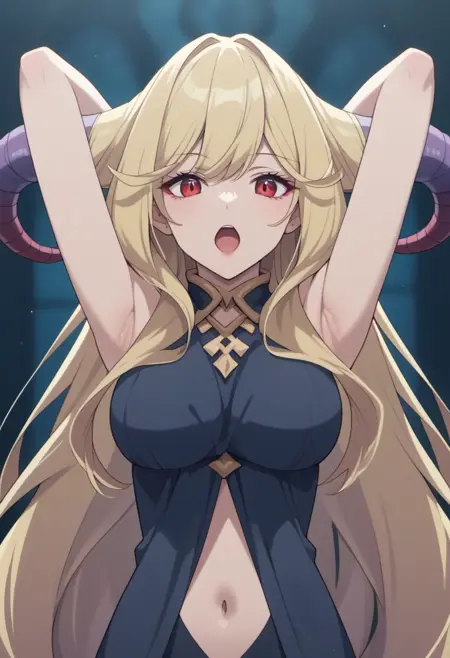 Trigger Words: kalavith, long hair, blonde hair, horns, red eyes