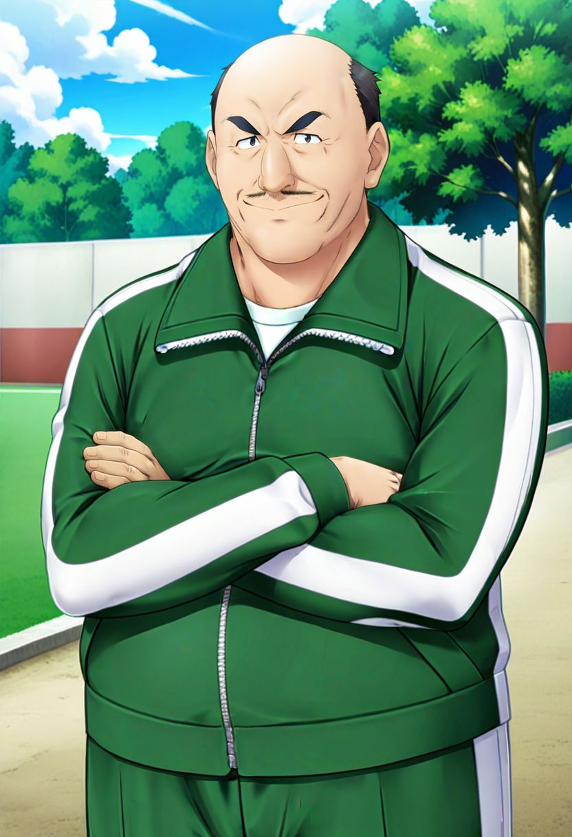 kamata,black eyes, facial hair, bald, fat, old man, fat man,
