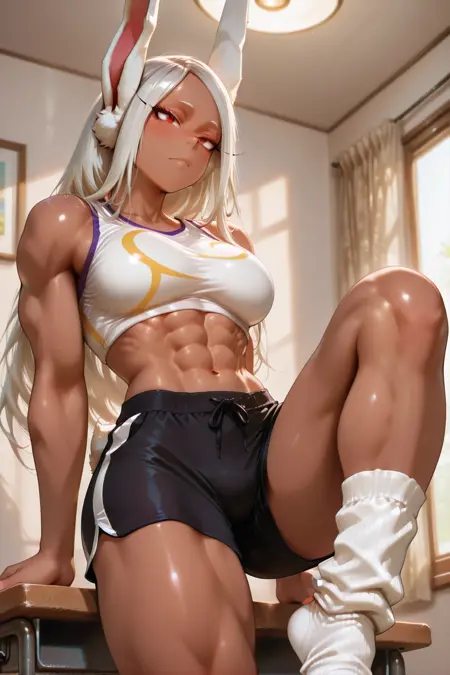 ilrumi, 1girl, 1boy, mirko, breasts, dark skin, dark-skinned female, hetero, completely nude, nipples, nude, animal ears, large breasts, rabbit ears, sex, long hair, shared bathing, shower \(place\), open mouth, mixed-sex bathing, white hair, closed eyes, rabbit girl, black hair, wet, tongue, upper teeth only, midoriya izuku, blush, long eyelashes, tongue out, sex from behind, teeth, toned, muscular, showering, thighs, parted bangs, smile, bathroom, standing sex, standing, water, tiles, short hair, age difference, hand on another's stomach, indoors<lora:illustrious Rumi Usagiyama-768x1152:1>