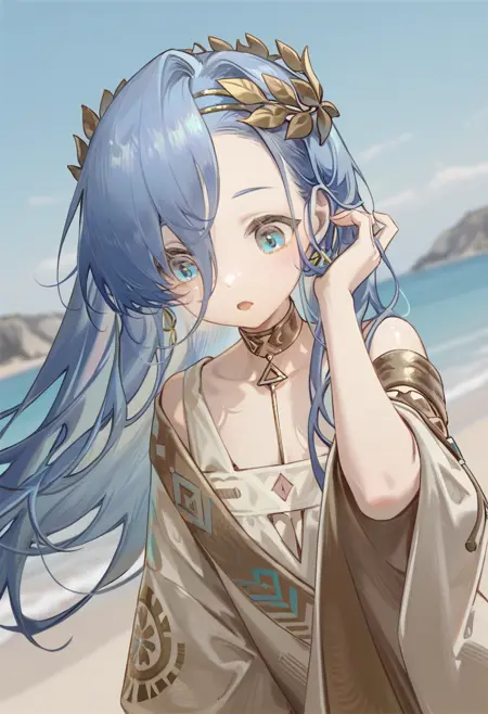 37(p), 파란 눈, 초커, 귀걸이, 눈 사이의 머리카락, 파란 머리, 파란 눈, 앞머리,