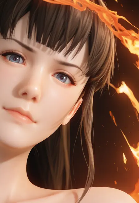 hitomi\(doaxvv\), deep blue eyes, pink lips,