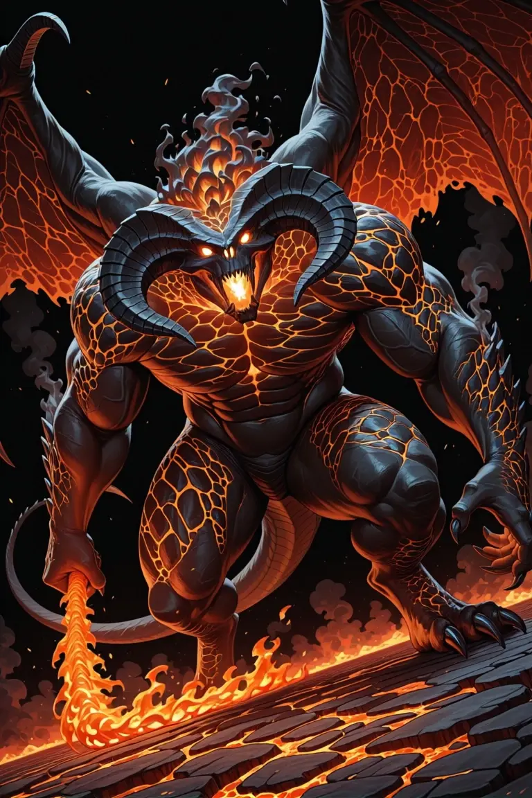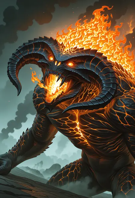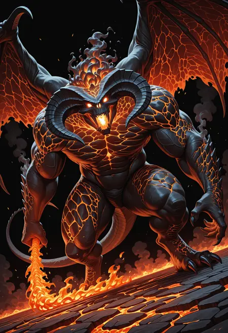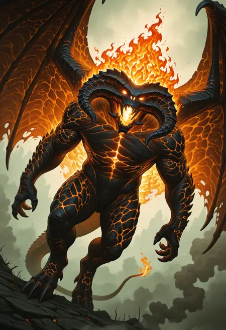 Trigger words : b4lr0g, horns, monster, glowing eyes, claws, sharp teeth, wings, fire, tail