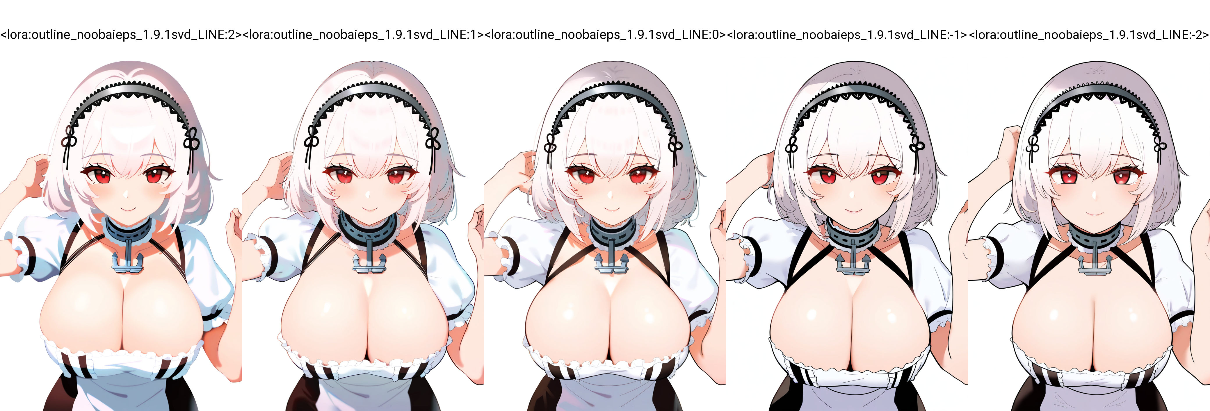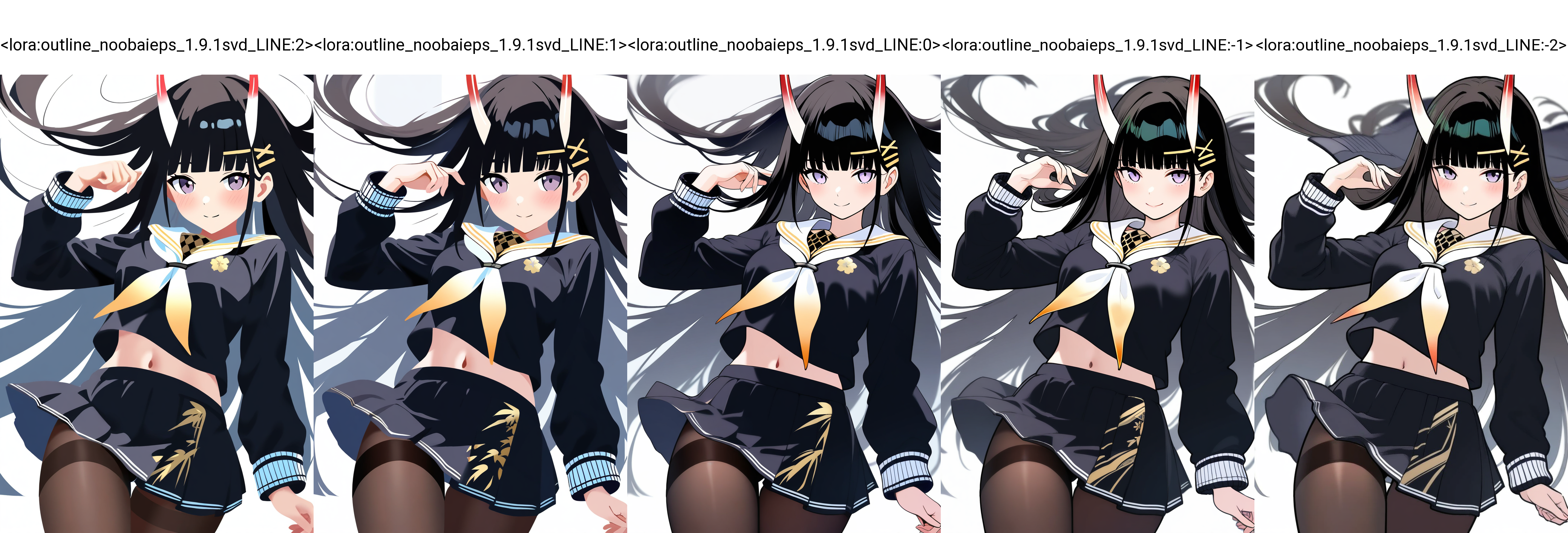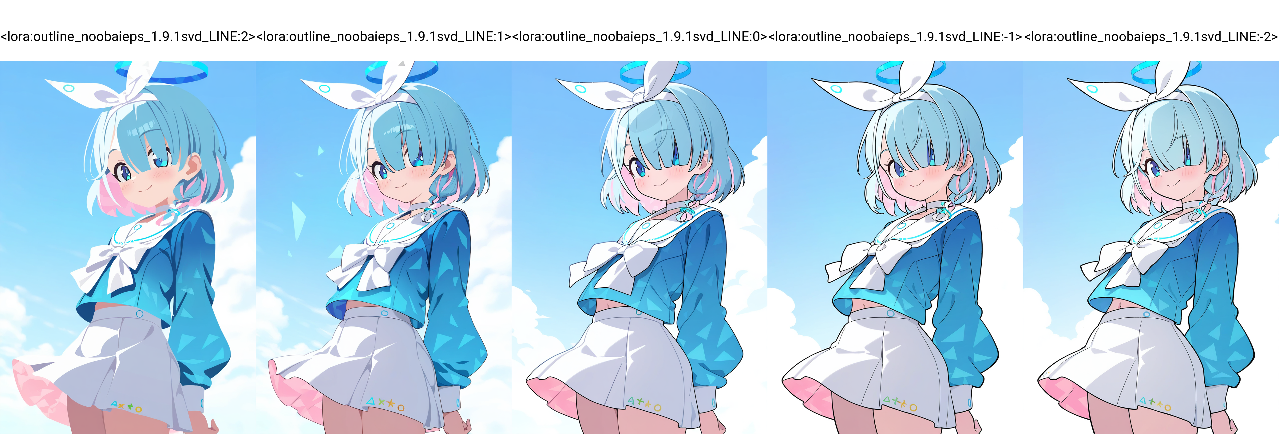 用于调节图像中的轮廓线,0以上权重为减少轮廓线,0以下权重为增加轮廓线,如果你想完全去除图片的轮廓线,请将权重设置为1.5以上。测试中增加轮廓线效果不明显,如果您需要增加轮廓线可以使用-2甚至更高的权重。