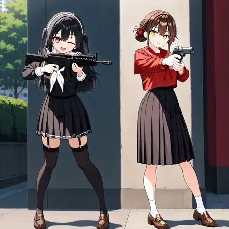| トレーニングワード | 1girl, black hair girl,two-side up,hairband,red eyes,コピーしました! white sailor collar,black shirt,white neckerchief,long_sleeves,white cuffs,black skirt,pleated_skirt,miniskirt,garter_straps,black_thighhighs,コピーしました! 1girl, brown hair girl,hair_ornament,single hair bun,yellow eyes,コピーしました! red sailor color,red shirt,red ribbon tie,long_sleeves,black skirt,knee-length skirt,pleated_skirt,コピーしました! |