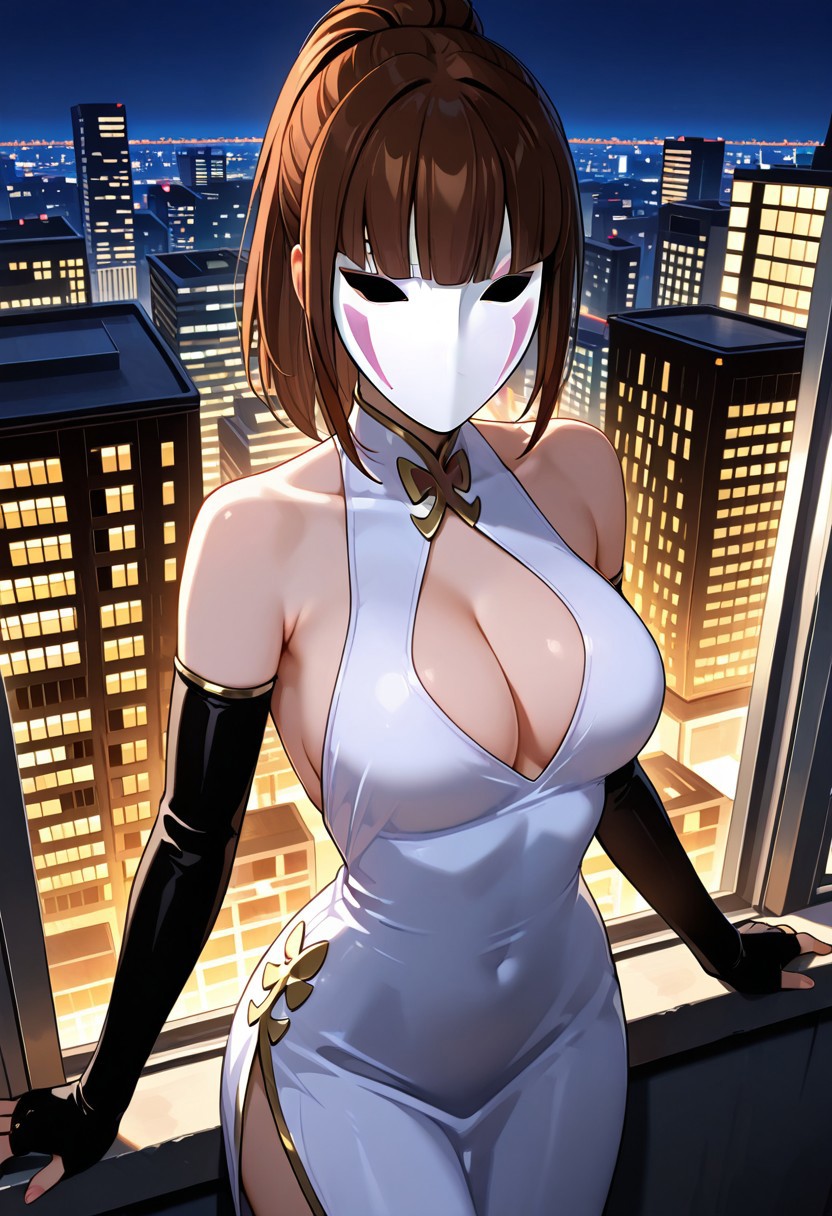 sechs、1人、女性、茶色の髪、ポニーテール、