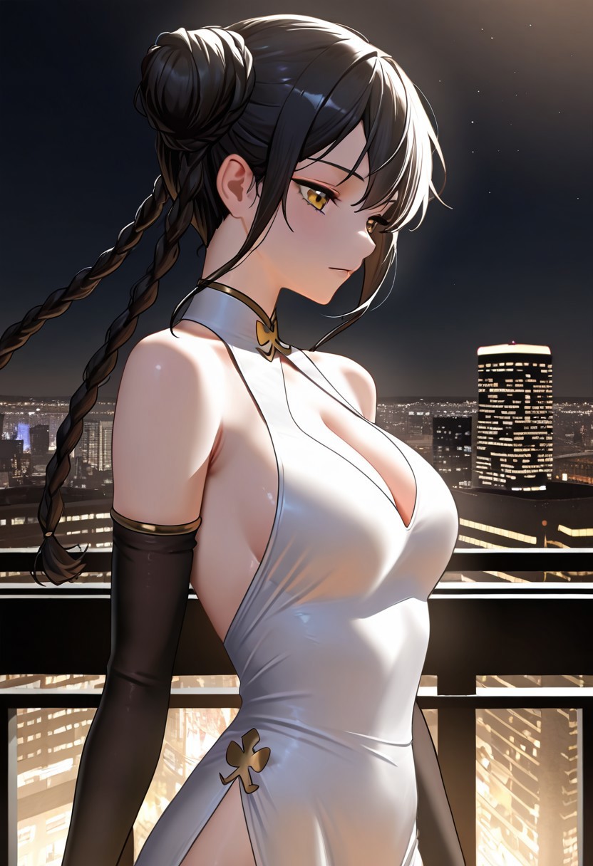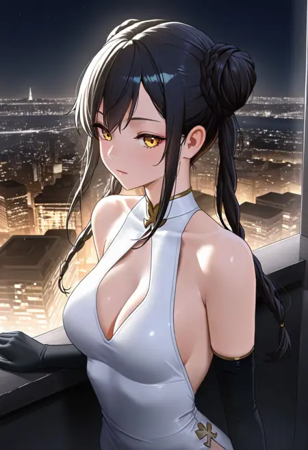 검은 팔꿈치 장갑/ 흰 팔꿈치 장갑, 흰 할터 드레스