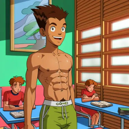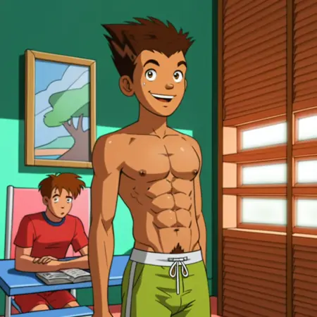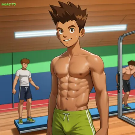 Theodore_TS, Solo, 1Man, Mature Male, Mature Men's Body, Aged Up, 18 Years Old, Light Brown Skin, Brown Hair, Spiked Hair, Olive Eyes, Brown Eyebrows, Brown Sideburns