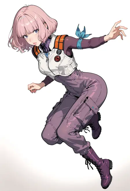 服装2:靴子,交叉系带鞋具,军装,系带靴,紫色鞋具,背心,飞行员服,连体衣,胸部,军服,紫色连体衣,白色背心,丝带