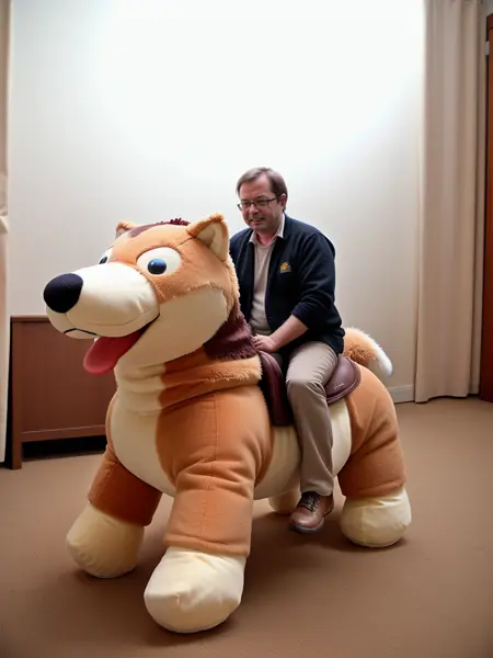 Ride a plush animal (horse, cat, dog, wolf, giraffe, dragon...) anywhere