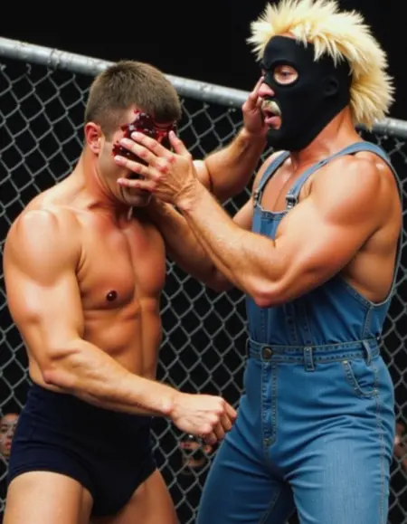 TL;DR strength .6-1. No specific tags needed. Talk about wrestling but do not use the word "wrestling" too much. Wrestling ring if needed, and World Class Championship Wrestling is OK. If your subject is not quite coming out correctly, try sticking wrzlr after their name.