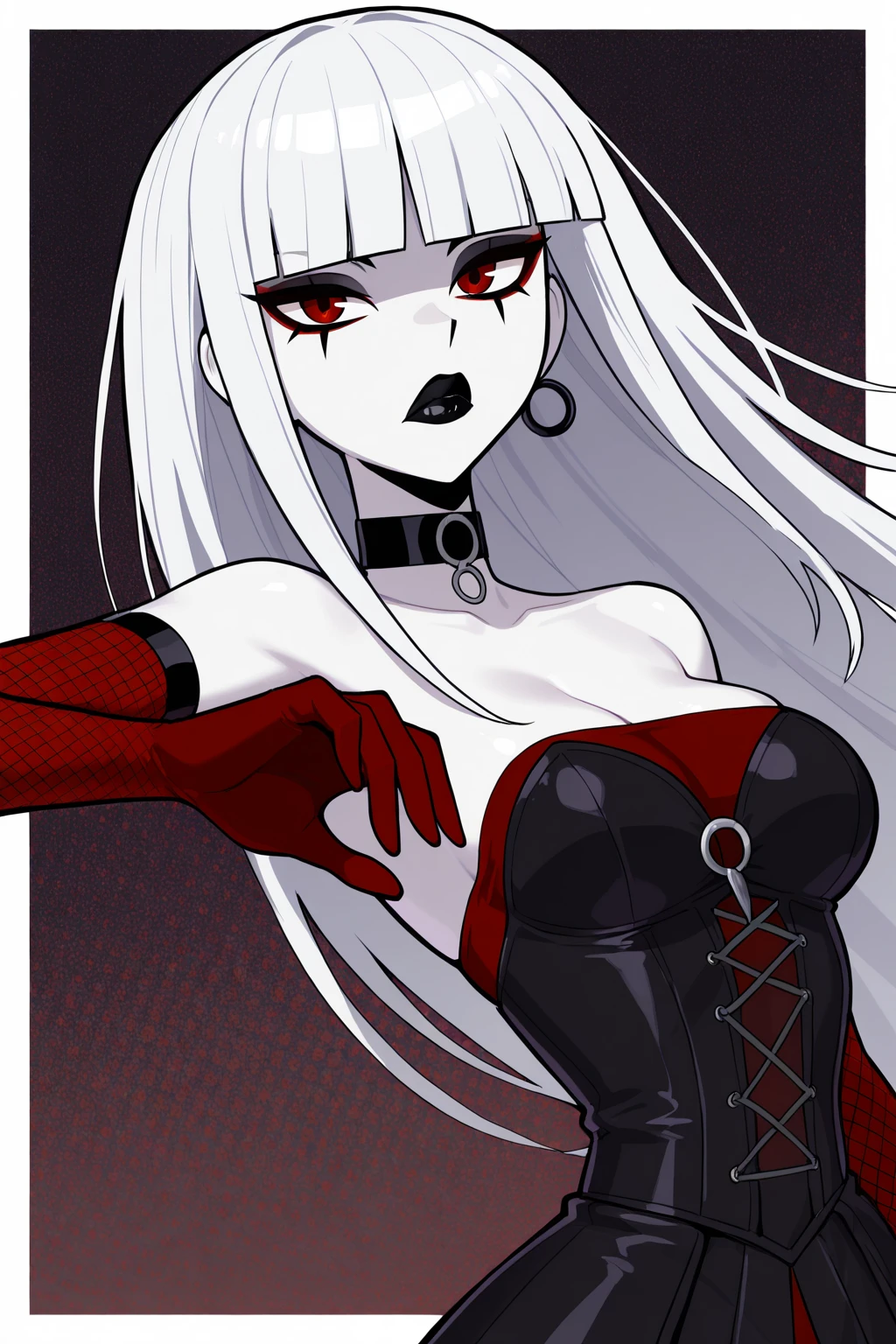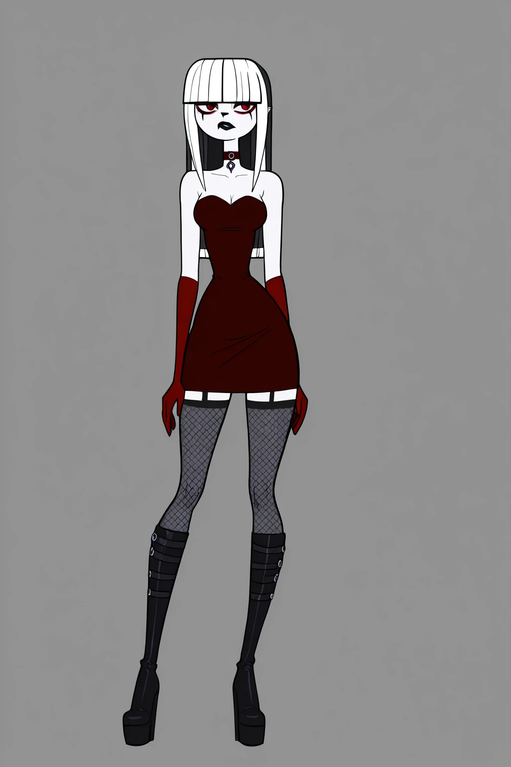 | 训练词汇 | CrimsonTDRR, 1girl, long black- white hair, blunt bangs, pale white skin, dark red strapless dress, black choker, dark red gloves, black fishnet stockings, thigh-high black boots, bold dark red eyes, dark eyeliner, black lipstick, big lips, crimson (tdi),已复制! |