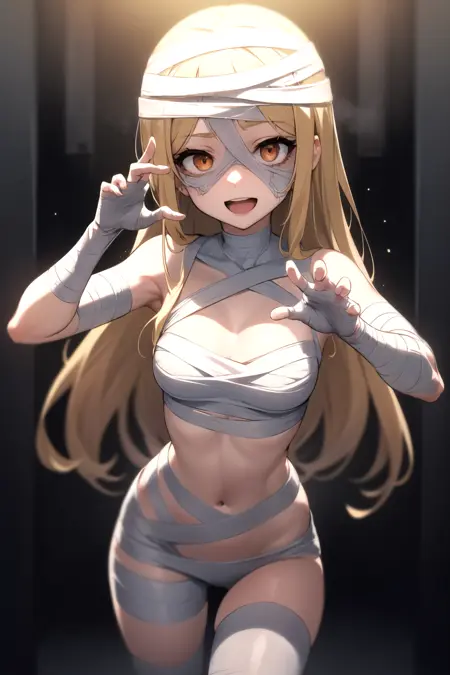 추가할 수 있는 유용한 태그: 붕대, 붕대 감긴 머리, 붕대 감긴 팔, 붕대 감긴 다리, 한쪽 눈에 붕대 등. "붕대 감긴 [신체 부위]"를 사용하여 해당 신체 부위에 붕대를 추가할 수 있습니다.