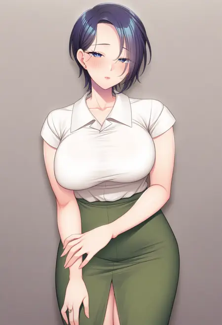 触发词: c-madoka, 成熟女性, 蓝发, 蓝眼, 短发,