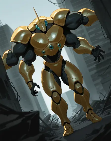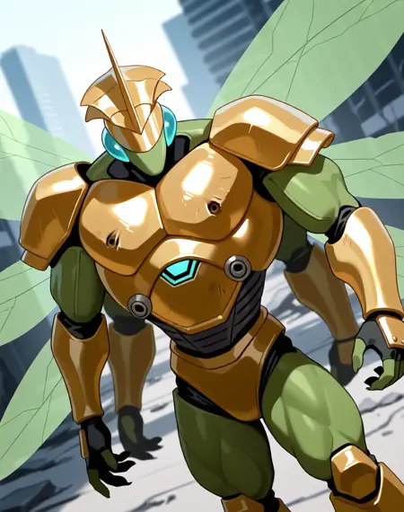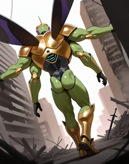 このLoRA向けのプロンプトは以下の通りです:(Ultimate Katris, muscular, mantis, Shinzo)