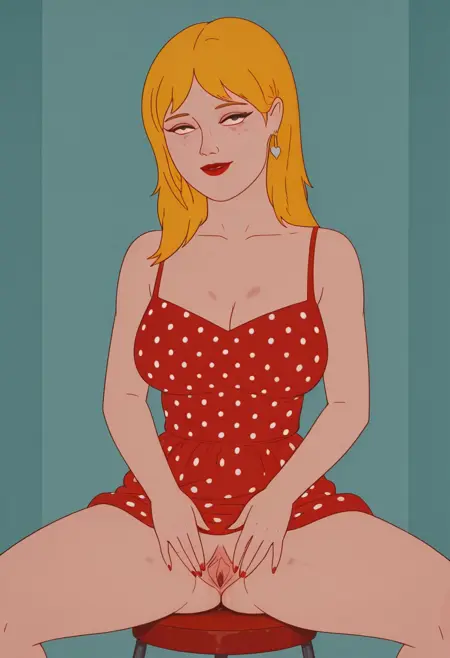 kati_(pelican_blue), freckles, piercing black eyes, clear eyes, bright pupils, beautiful eyes, beautiful blonde hair, beautiful shoulder-length hair, open bangs, big and shaggy breast, thin waist, wide hips, beautiful skin, natural beauty, extraordinary beautiful woman, attractive woman, super sexy woman, lustful body, sexy woman with seductive obscene body, sensual body, voluptuous body, sexy beauty,