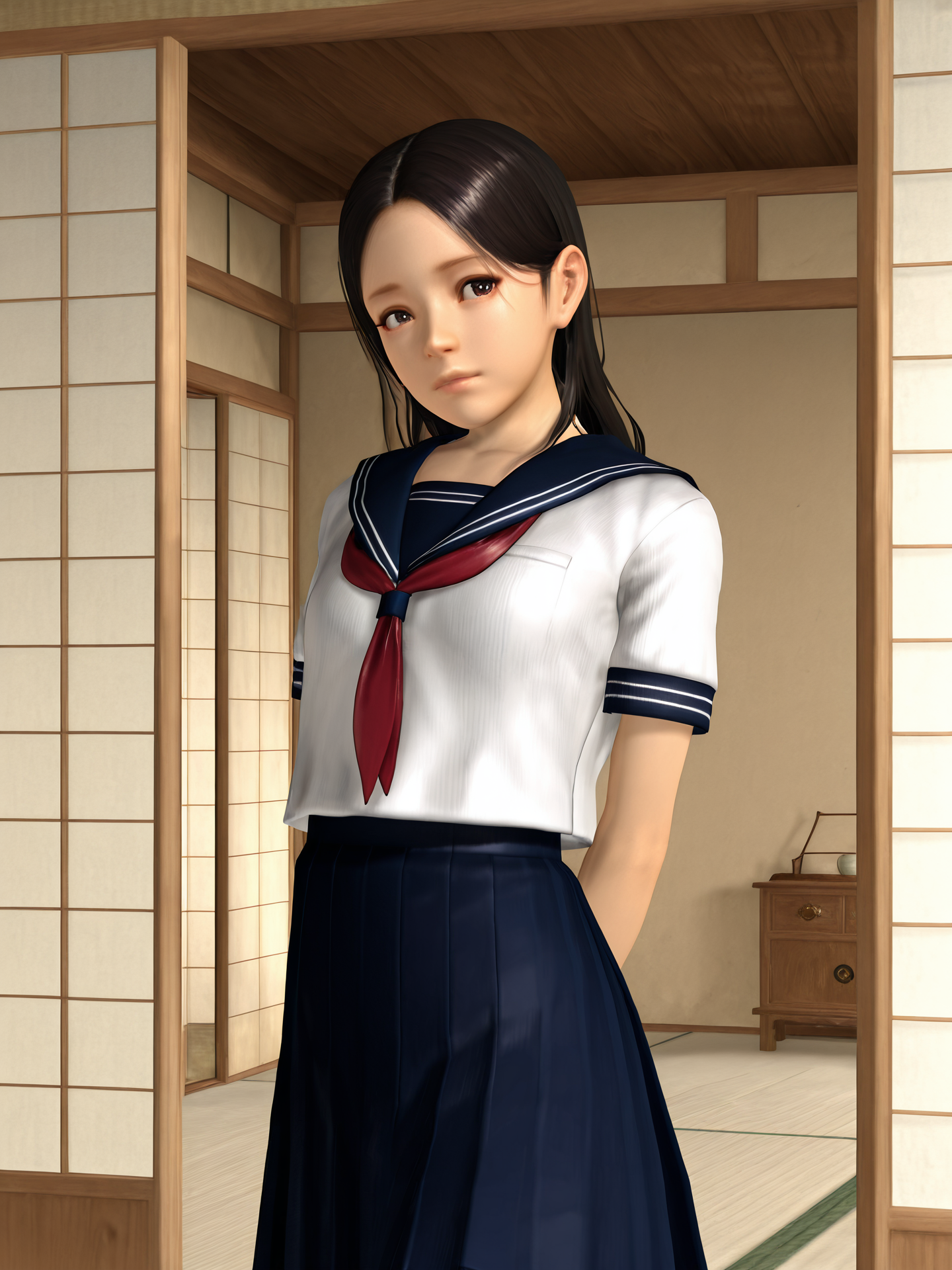 sawamuraharuka, brown eyes, black hair, long hair, parted hair, forehead, small breasts, petite, slim, middle school girl