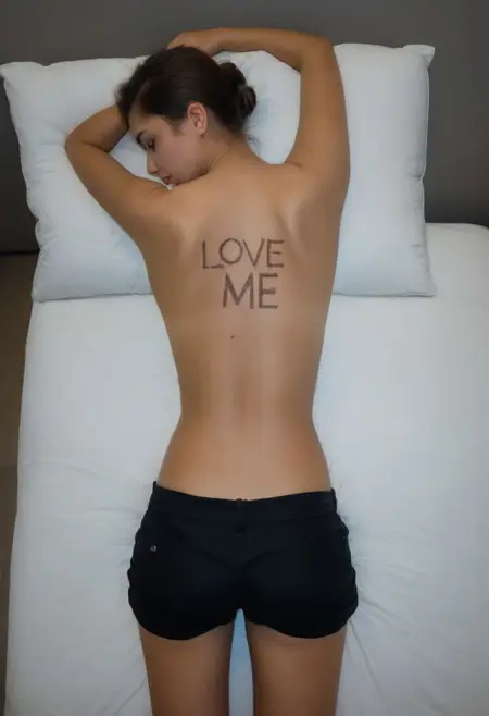 如果难以生成任何文字或文字不足,尝试降低 LoRA 的强度,同时提高单个关键词的强度。例如:body writing, (body writing "love me":2)