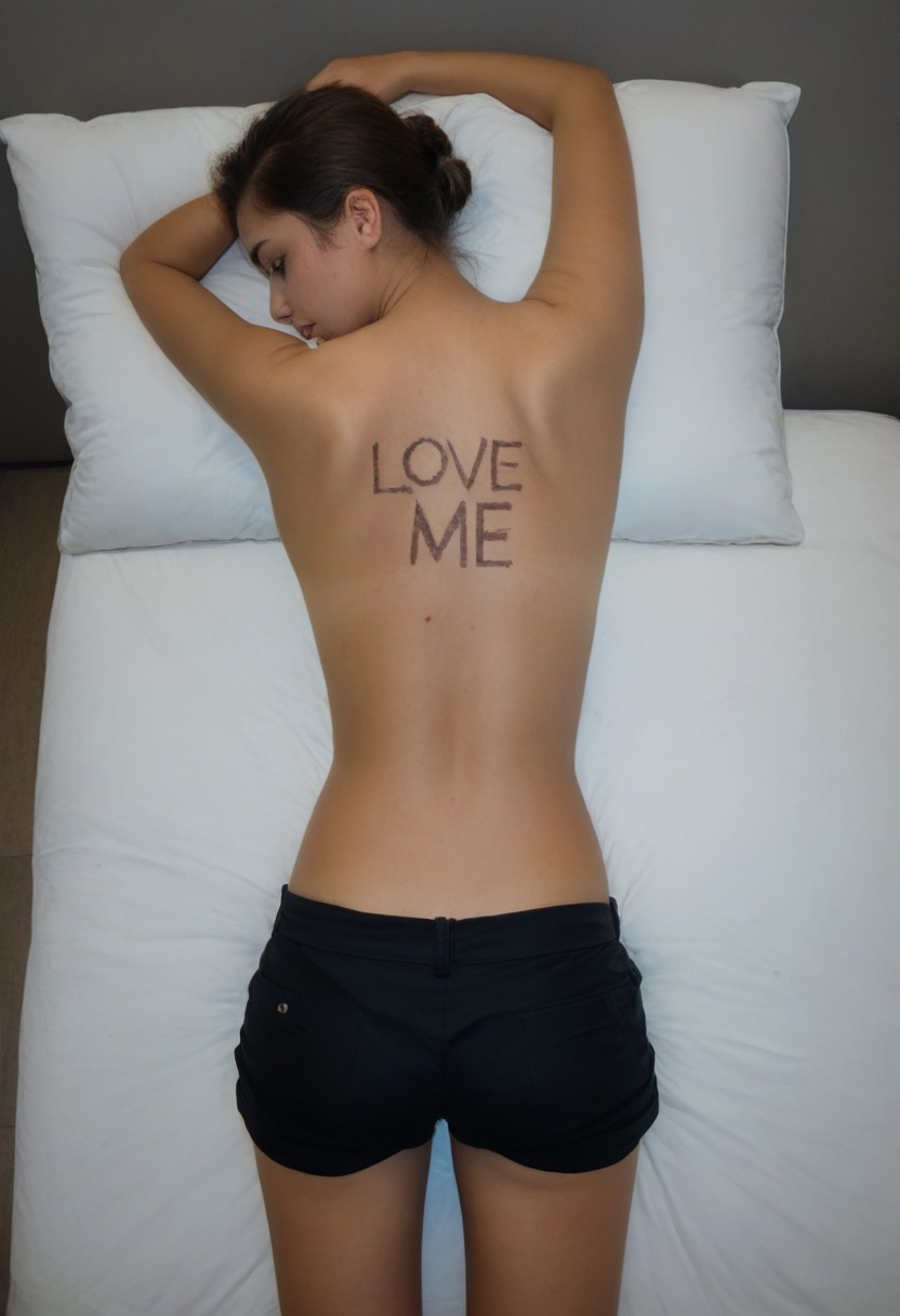 If you have trouble getting any text or enough text, try decreasing the strength of the lora but increasing the strength of individual keywords. E.g. body writing, (body writing "love me":2)
