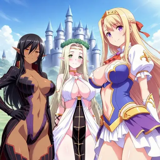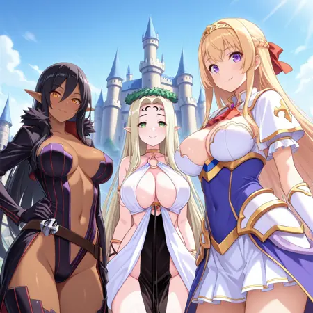 - Celestine Lucross: 1girl, celestine, blonde hair, long hair, green eyes, elf, large breasts,