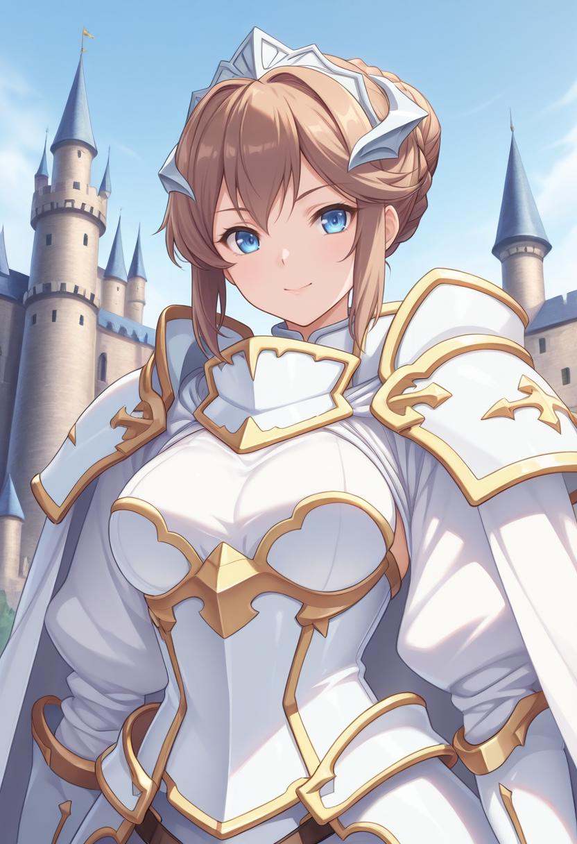 - Claudia Levantine: 1girl, claudia, blue eyes, brown hair, hair bun, hair bang,