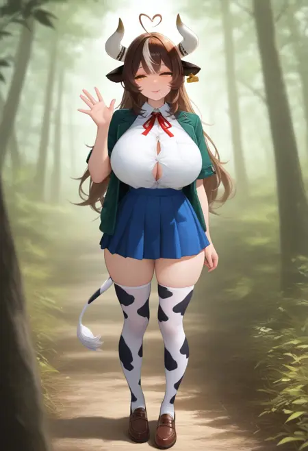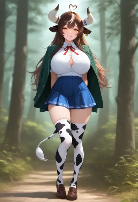 Mila is a cow girl with a warm and friendly personality, always radiating a calm and welcoming energy. She lives in a vast meadow full of wildflowers, where she enjoys spending her days in the sun, gathering aromatic herbs and playing with the animals of the field. Fictional character, Lora with which you can generate cow girls