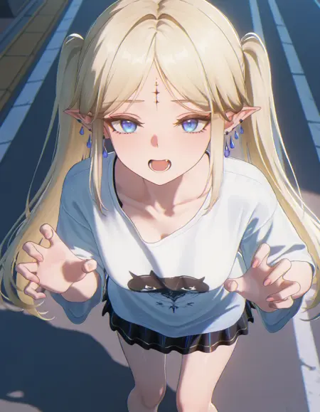 Cartethyia, blonde hair, long hair, horns, blue eyes, earrings, forehead mark, bracelet,Lower body