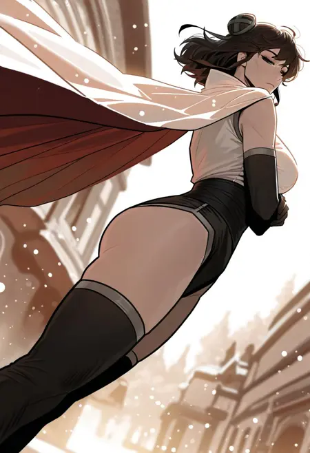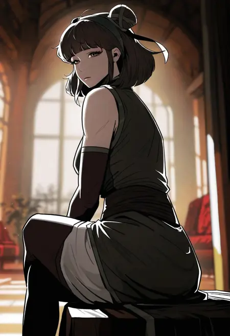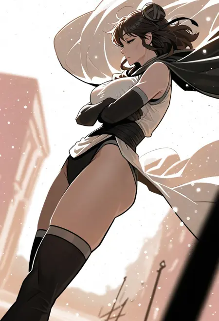miryeo, outfit3, single hair bun, cape, elbow gloves, tighhighs,