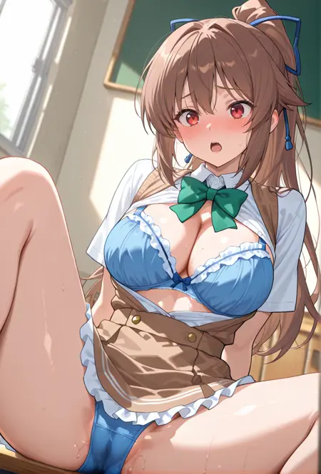 | トレーニングワード | kiryuutsukasa, brown hair, long hair, ponytail, red eyes, hair ribbonコピーしました! kiryuutsukasadef, brown hair, long hair, ponytail, red eyes, hair ribbon, blue bowtie, bowtie, juliet sleeves, sailor collar, brown dress, frilled dress, cropped jacketコピーしました! |