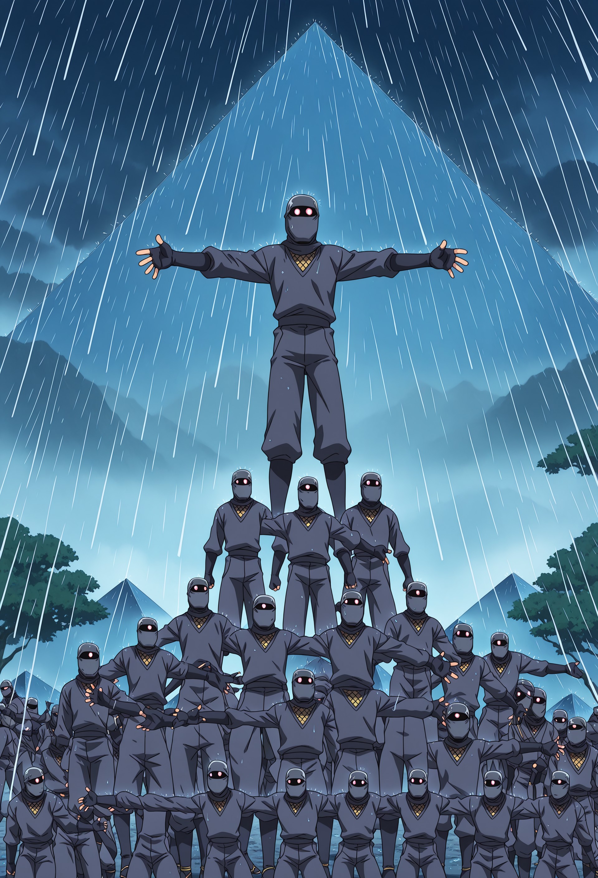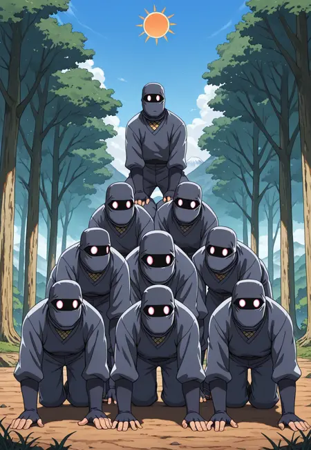 The idea for this lora came while working on the lora for "Ninin ga Shinobuden". The ninjas from this anime sometimes built huge pyramids for people to show off their coolness. But not a single picture of ninja pyramids made it into the dataset for this lora. ¯\_(ツ)_/¯
