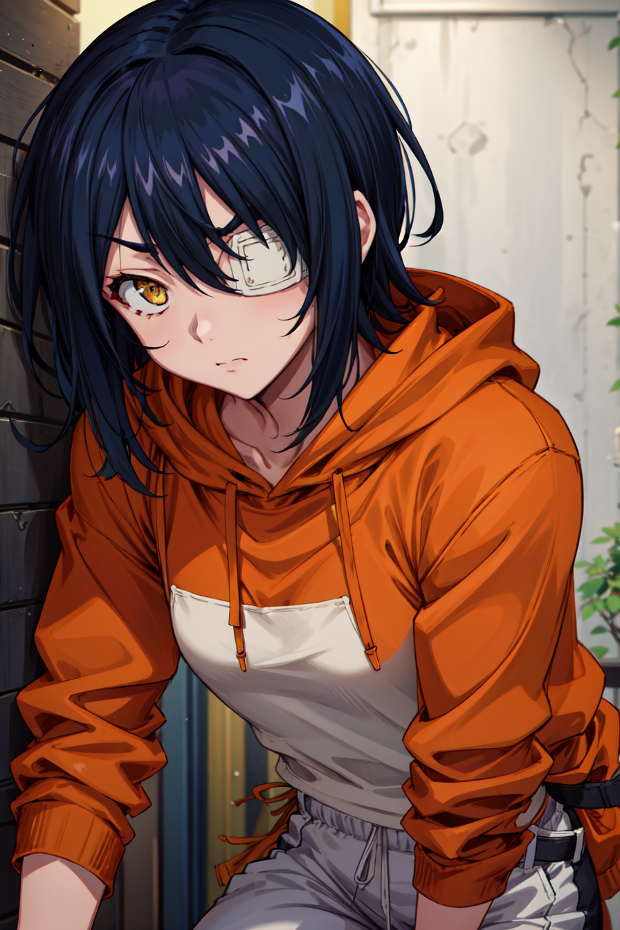 akito_agito, short hair, yellow eyes, eyepatch, blue hair,