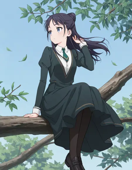 <lora:nemu_miyao-witch_watch_s1-ixl-anime-soralz:1>, 涅穆·宫代(巫师观察),长发,黑发,发髻,半扎发,侧发,蓝眼睛