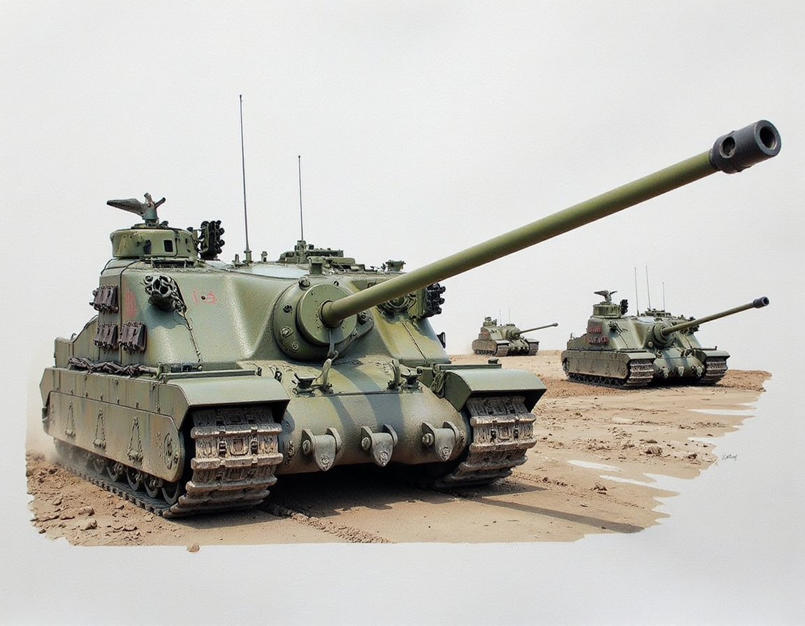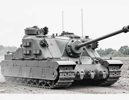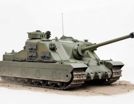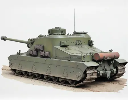 It was a massive tank measuring 10.6m in length, 3.91m in width, and 3.05m in height, equipped with a long-barreled QF 32-pounder (94mm gun), with 225mm frontal armor, 152mm side armor, and 50mm side skirts covering the tracks, making it a truly fortress-like vehicle. As a result, it weighed 79t, more than the German Jagdtiger, and even with its Rolls-Royce Meteor engine, it was barely mobile enough to reach a top speed of 20km/h.