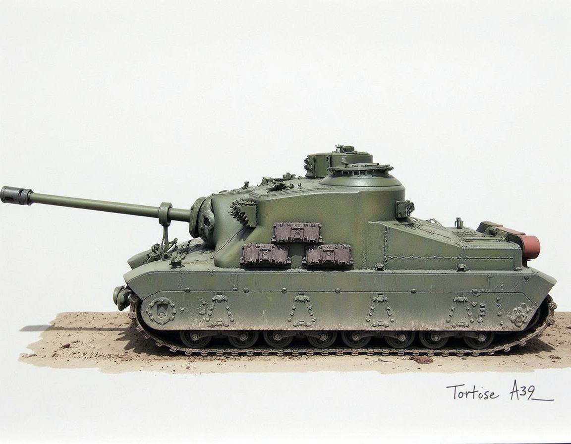 ノルマンディー上陸作戦が目前となった頃、来るべきドイツのジークフリート要塞をはじめとする拠点攻略のため、米・英は時を同じくして超重量級の強力な新型戦車の開発に取り掛かりました。その結果生み出されたイギリスの試作戦車がこのトータス重突撃戦車です。