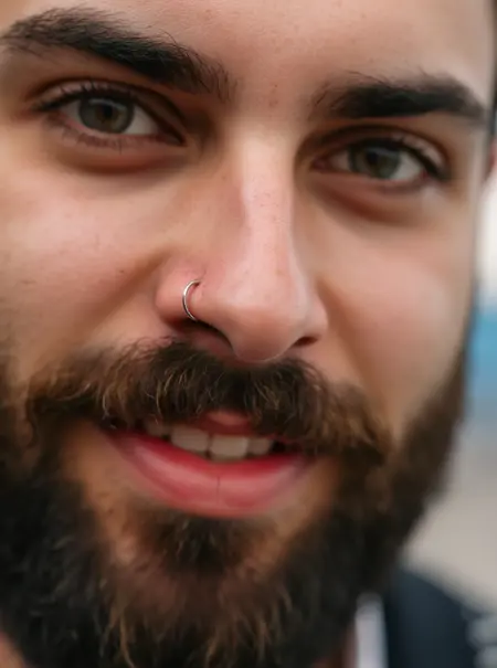 I found some piercing LoRAs, but I noticed a common problem: Flux needs to be trained on the specific side of the face where the piercing should be, otherwise Flux will put the piercing on both sides.