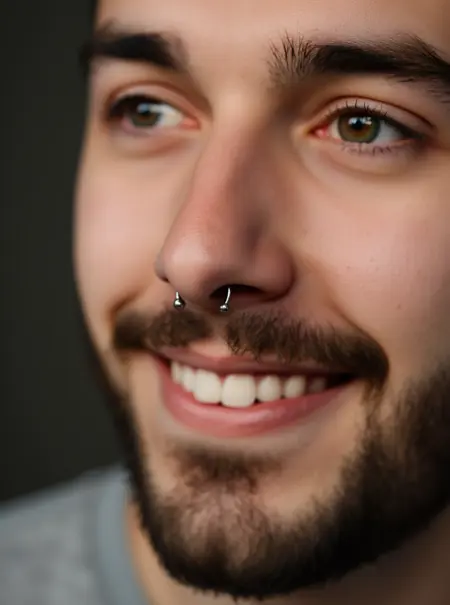 I found some piercing LoRAs, but I noticed a common problem: Flux needs to be trained on the specific side of the face where the piercing should be, otherwise Flux will put the piercing on both sides.