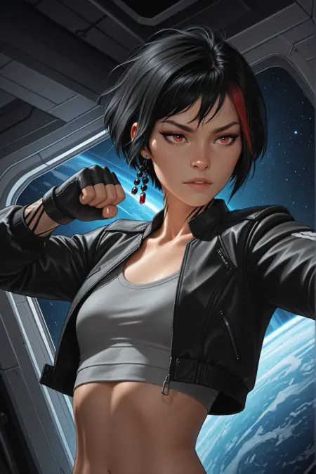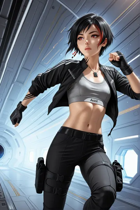 She's a Specter—a kind of mix between space mercenary and bounty hunter. In short, she’s a freelancer who tracks down criminals or completes contracts using methods that border on the illegal (though she usually has the proper accreditations). She's part of a small group of young Specters who own a modest spaceship—old, but reliable. She’s also psionic, able to sense the presence of life in nearby areas.