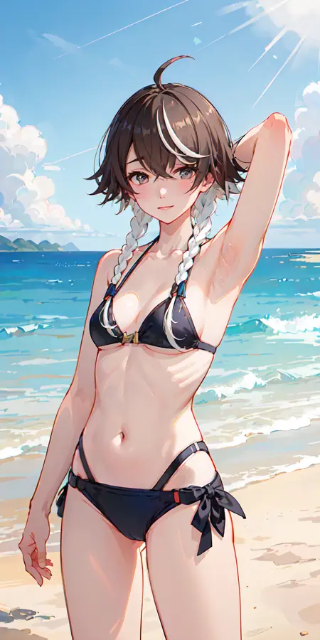 3. When creating NSFW content, please keep the prompt words: qinnuo, ahoge, gray_eyes, short_hair, low_twin_braids, white_streaked_hair
