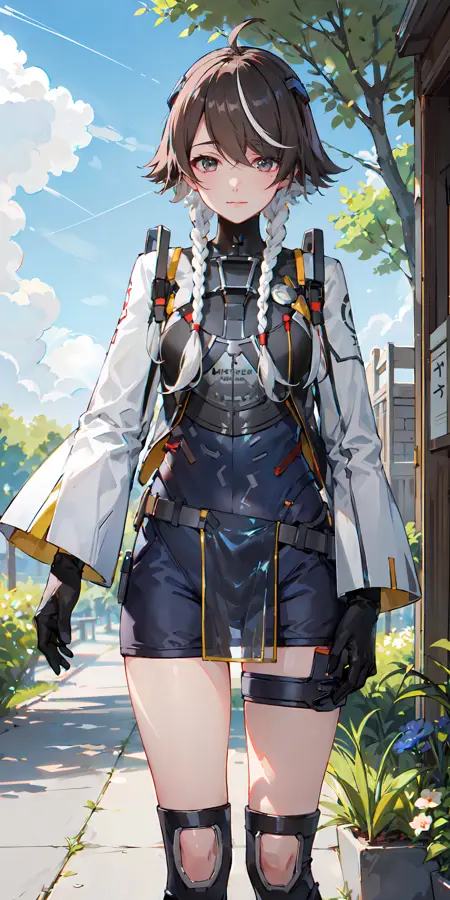 3.在创作NSFW内容时,请保留提示词:qinnuo, ahoge, grey_eyes, short_hair, low_twin_braids, white_streaked_hair