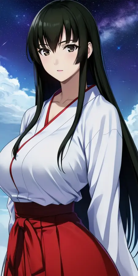 chest_sarashi_open_clothes_short_kimono_fundoshi: her open miko outfit sans hakama skirt.