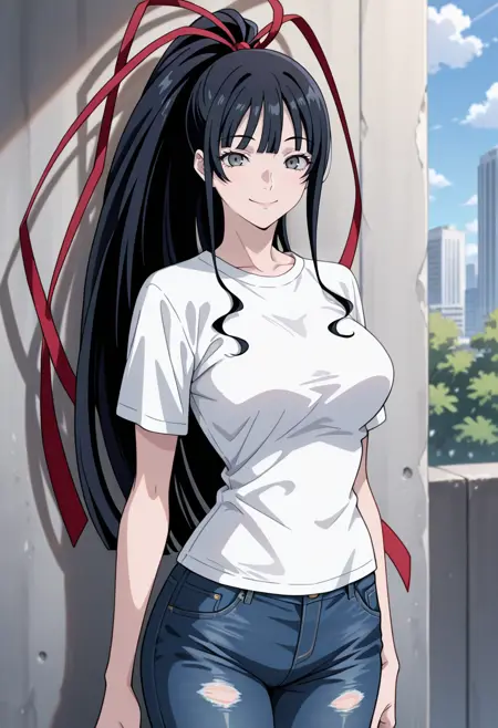 Her outfit from Chapter 160 of the manga is usable as well, though it has a large preference for her coat being open (even though it wasn't open). Using dynamic pose gives a better chance at the coat being closed.