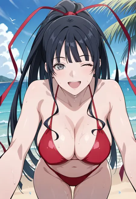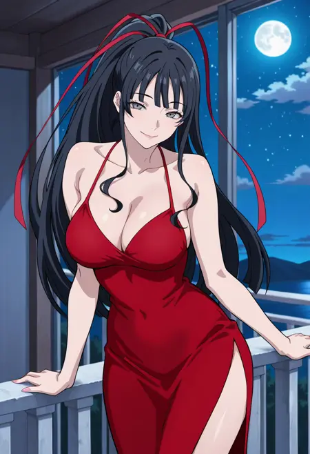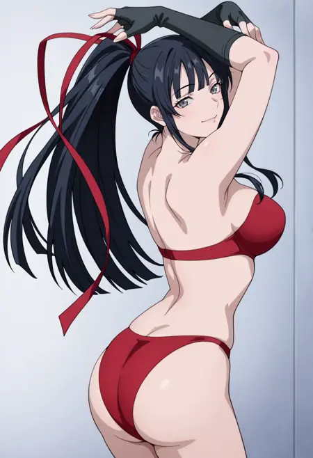 アニメ衣装:ストラップレスの赤いブラ、赤いパンツ