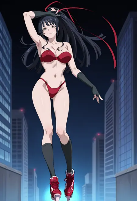 General Outfit (common to all): hair ribbon, red ribbons, black gloves, fingerless gloves, black kneehighs, red airtrecks, red roller skates